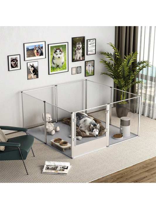 Clear Acrylic Playpen & Whelping Box – 52"x52" Extra-Large Indoor Crate with Waterproof Pad
